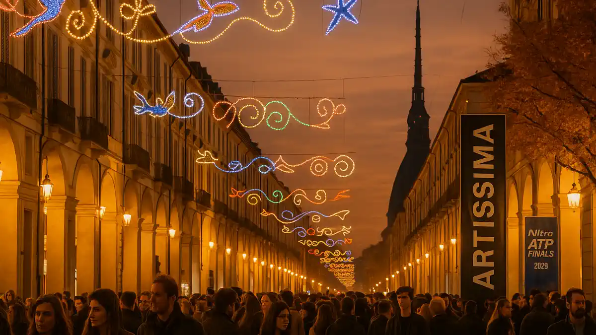 Ноябрь 2025 в Турине снова «сшит» вокруг Недели современного искусства и большого тенниса. В начале месяца город работает как одна площадка: ярмарки Artissima и Flashback, фестиваль Paratissima в Монкальери и музыкальный C2C идут параллельно с бесплатными музеями и ночными открытиями. Вторая половина ноября переходит в спорт и свет: Luci d’Artista уже горят, а 9–16 ноября Inalpi Arena принимает Nitto ATP Finals с восьмёркой сильнейших теннисистов мира.