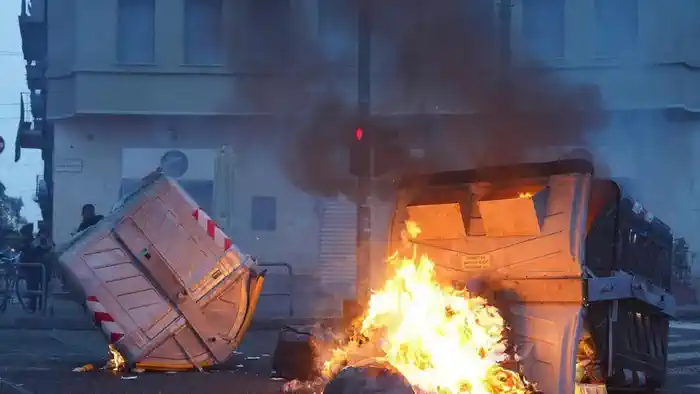 После операции и разрыва «пакта» начались протестные действия. RaiNews сообщал о жестких столкновениях на манифестации против освобождения центра, с вмешательством полиции и применением спецсредств. В таких сценариях водометы и слезоточивый газ обычно используются, когда полиция считает ситуацию выходящей из-под контроля или когда часть толпы пытается прорвать кордоны.