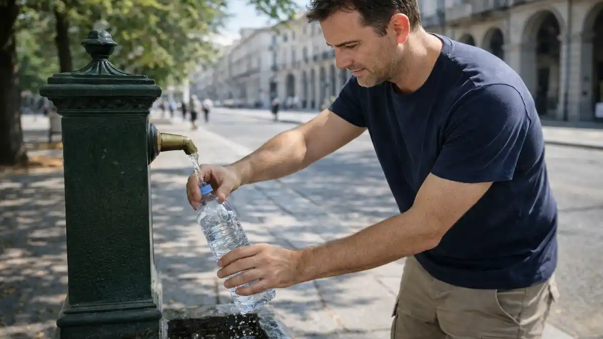 В Турине много уличных питьевых колонок (фонтанчиков). В жару это удобно, но важно помнить: если уже «накрыло», одной воды мало — нужно охлаждение и покой.