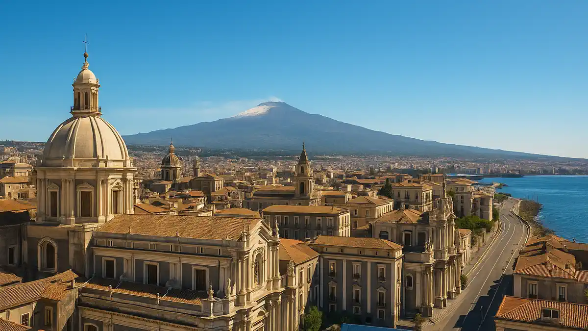 Катания выигрывает сочетанием широты, открытости к Ионическому морю и локальной циркуляции у подножия Этны. Рядом идёт Сиракуза с очень близким показателем, затем Кальяри на Сардинии. Для тех, кто хочет максимум света и мягкую зиму, именно эти города дают стабильный «солнечный капитал». Дополнительно климатологические справочники показывают высокую годовую инсоляцию Катании и длинные световые дни летом.