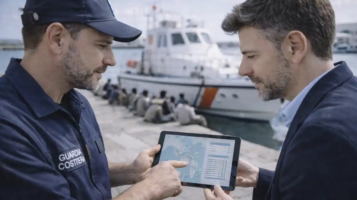 Миграция в Италии статистика 2024: меры и контроль морских маршрутов в итальянском порту: обсуждение данных и контроля морских маршрутов, без логотипов и текста