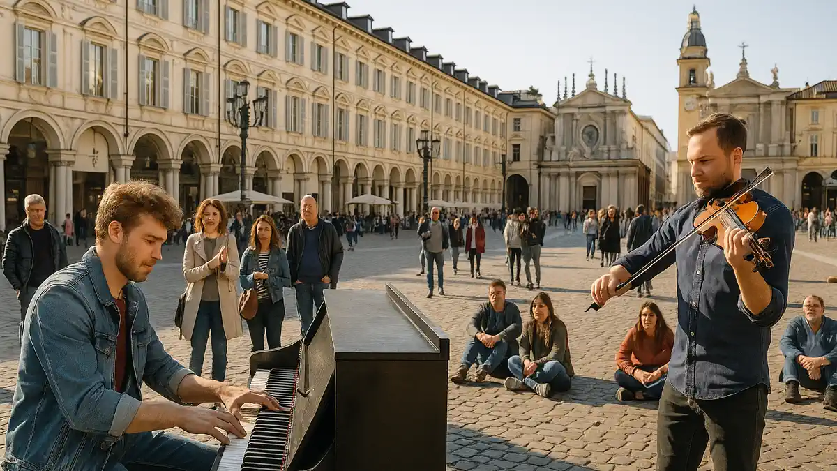 Представьте, что вы идёте по центру Турина, а со стороны площади доносятся живые звуки скрипки и пианино. Кто-то играет классику, кто-то известные мелодии, а туристы и местные жители останавливаются, чтобы послушать. Именно так многие знакомятся с городом: через музыку, которая звучит прямо на улицах.